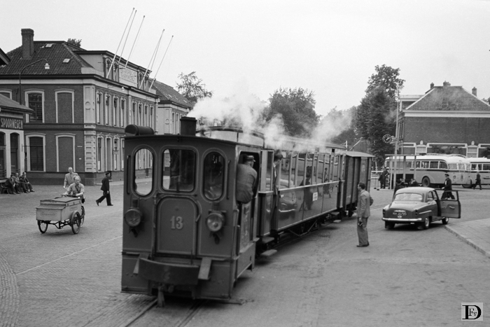 De jubileum stoomtram zet terug op het ept te Doetinchem.