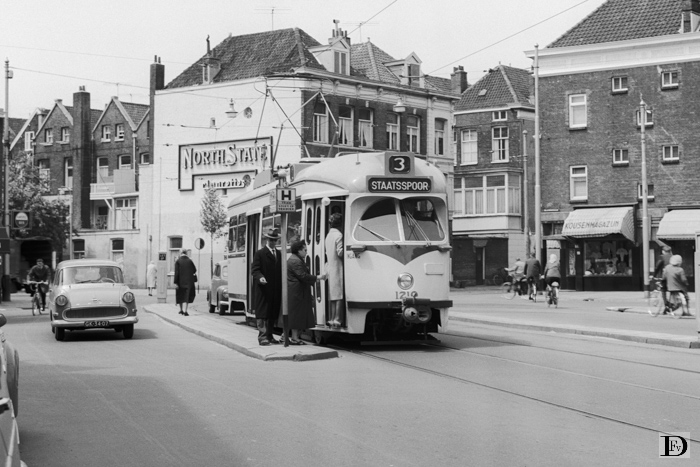 PCC-car op lijn 3 in de Vondelstraat aan de halte Elandstraat.