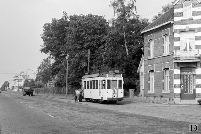 Los motorrijtuig op lijn 15, Mons - Maisières - Casteau, bij St-Dénis.