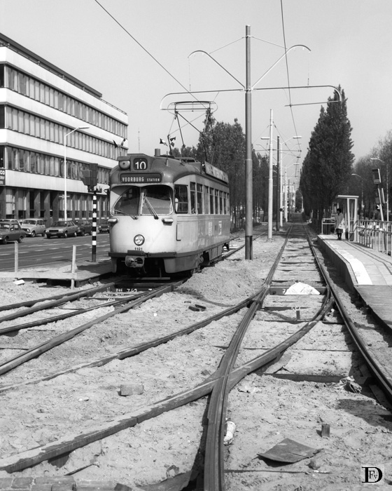De Noord-West Buitensingel bij de Loosduinseweg. De verbindingssporen naar de Loosduinseweg zijn net aangelegd.