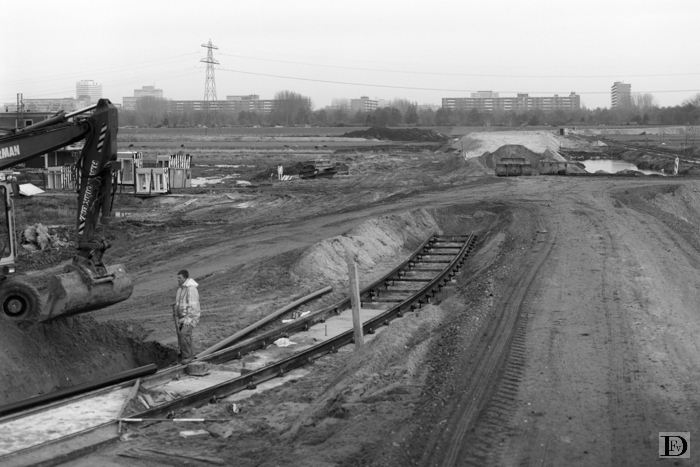 Wateringseveld, enkele dagen na het begin van de aanleg van de trambaan voor lijn 17.